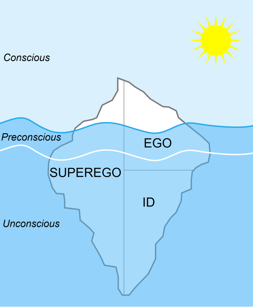 The super-ego (also unconscious) is an interesting part of the mind, because this is the part of our minds that has really absorbed the messages society, family members, and the culture we grew up in – it is the part of our minds that tells us off for having thoughts that are not compatible with what society, culture and family might want or expect of us.